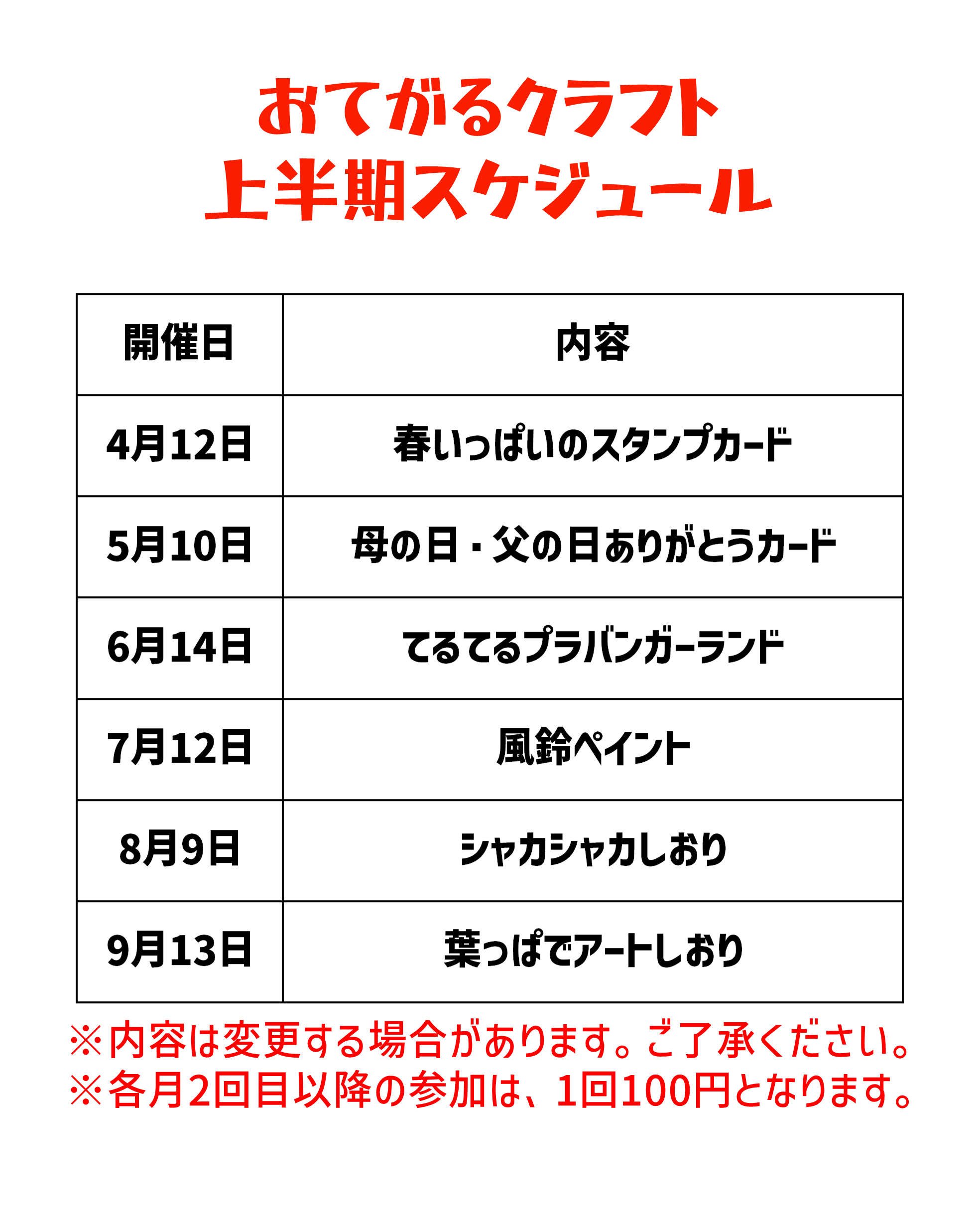 ※各月2回目以降の参加は、1回100円となります。