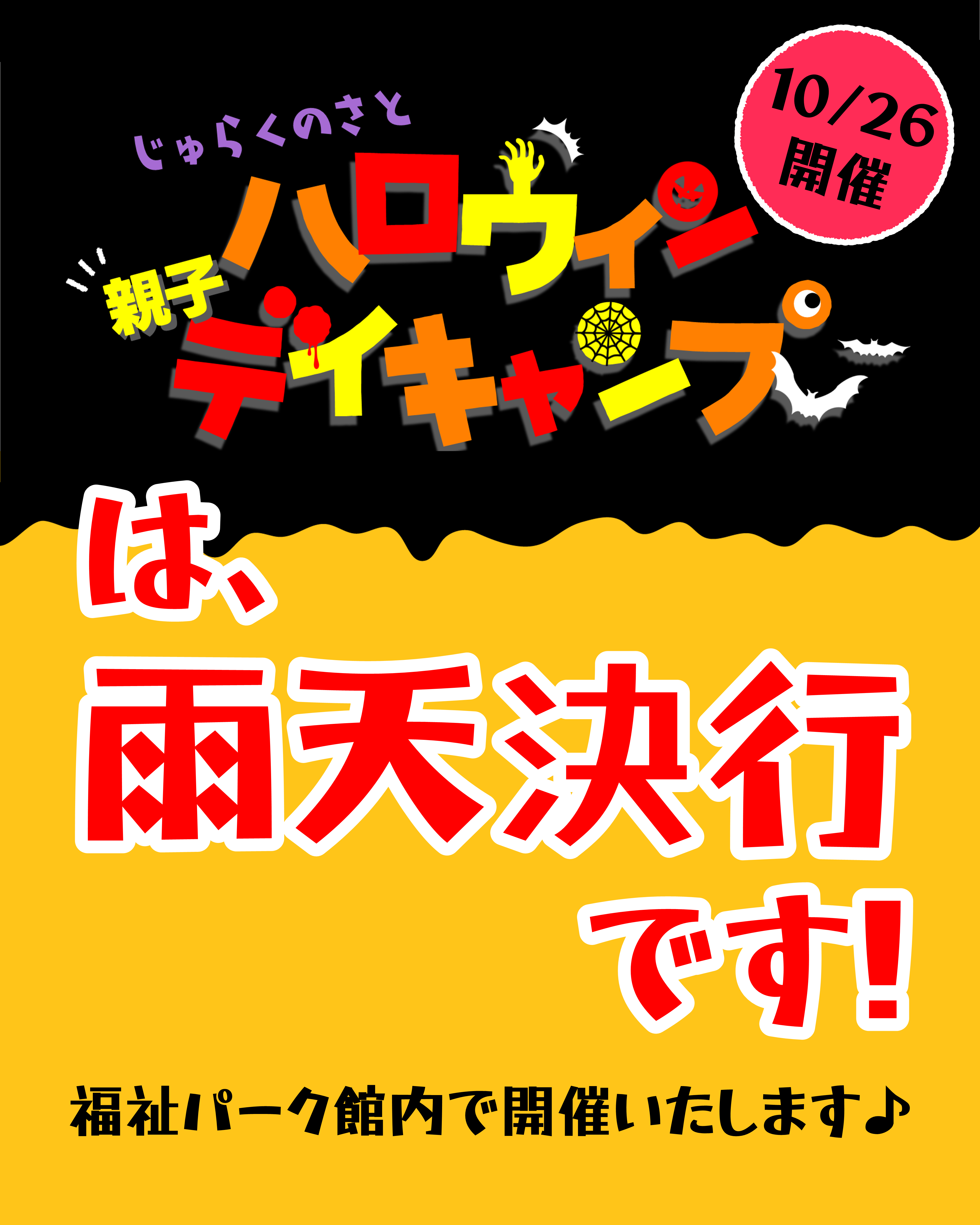 10月26日(日)開催の「じゅらくの里 ハロウィン親子デイキャンプ」ですが、